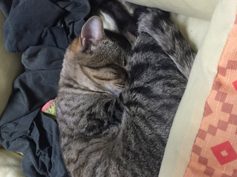 最近では意図的なネコパンチも食らうこともないし、体に乗ってくる時も爪を出さないことが多かったり、ちょっとゴロゴロしてるだけでも近くに来て一緒にごろ寝したり、ときには甘噛みしてくることもあったり、すっかり打ち解けた気がします。