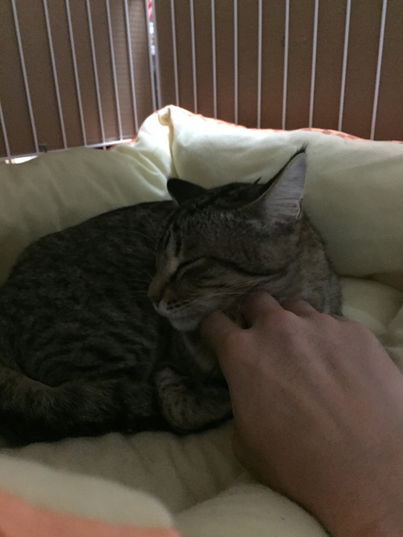 性格: おとなしいです。急に環境が変わったため神経質になっています。なつくには時間を要するかもしれません。抱っこはまだ苦手ですが、撫でることは可能です。